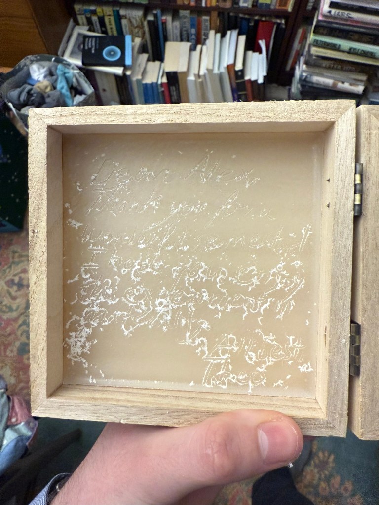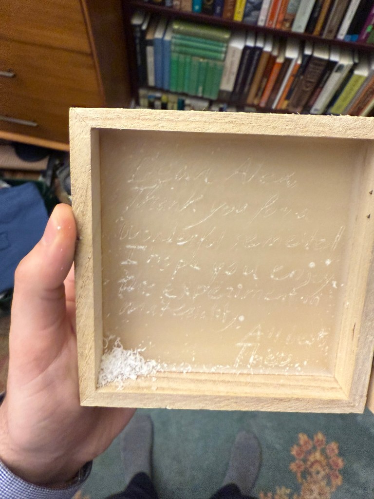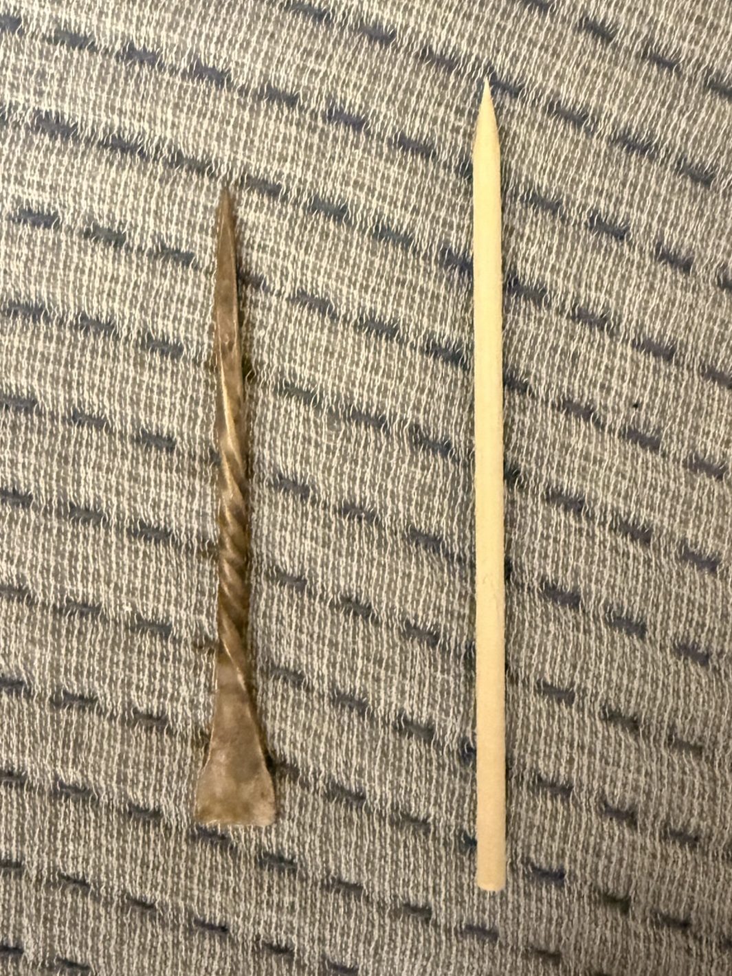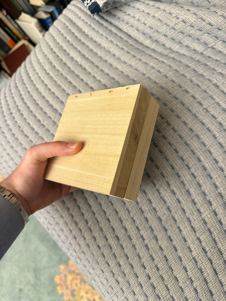 For the inscription itself, I used a homemade stylus made from a square wooden dowel. I had sanded down one corner to create a slightly beveled edge that let me grip it more naturally—pinching it between thumb and middle finger, with my index finger guiding from above. In the course of things, I ended up using two styli. The first began to dull mysteriously partway through, possibly due to the water I kept brushing onto the clay to keep it soft. The wood was porous, and the repeated wetting may have softened or blunted its edges. I hadn’t expected tool fatigue quite so early in the process.
